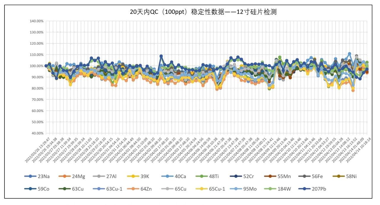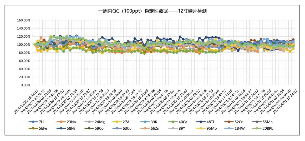 圖1 12寸硅片在線檢測(cè)QC長(zhǎng)期穩(wěn)定性-LabMS 3000s ICP-MS