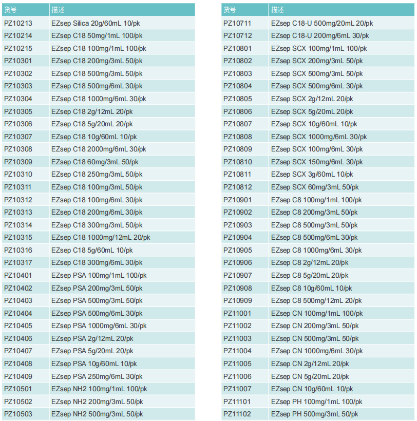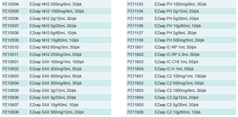 以球形硅膠作為基體,在特定條件下讓硅膠表面的硅羥基與硅烷化試劑反應(yīng),使硅膠表面被指定的化學(xué)官能團(tuán)覆蓋,從而得到了 EZsepTM硅膠鍵合吸附劑,鍵合官能團(tuán)的類型決定著硅膠鍵合吸附劑的吸附特性。由于空間位阻的影響,硅烷化反應(yīng)最高僅能覆蓋硅 膠表面 50% 的硅羥基,殘余的硅羥基會(huì)與極性目標(biāo)化合物(尤其是堿性化合物)發(fā)生極性相互作用,這種相互作用是獨(dú)立于鍵合官能團(tuán)以外的作用力,通常被稱作“次級(jí)相互作用”(Secondary Interaction)。在反相吸附劑中,次級(jí)相互作用是不被期望的,因?yàn)榉聪辔絼?duì)目標(biāo)化合物的保留是通過非極性相互作用實(shí)現(xiàn)的,次級(jí)相互作用的存在改變了反相吸附劑的保留機(jī)制。為了消除反相吸附 劑中的次級(jí)相互作用,我們使用空間位阻較小的短碳鏈硅烷化試劑與硅膠表面殘余的硅羥基進(jìn)行反應(yīng),這一處理方法被稱為“封端”(Endcap)。對(duì)于正相吸附劑和離子交換吸附劑,次級(jí)相互作用并不被排斥或影響不顯著,因而不必進(jìn)行封端處理。