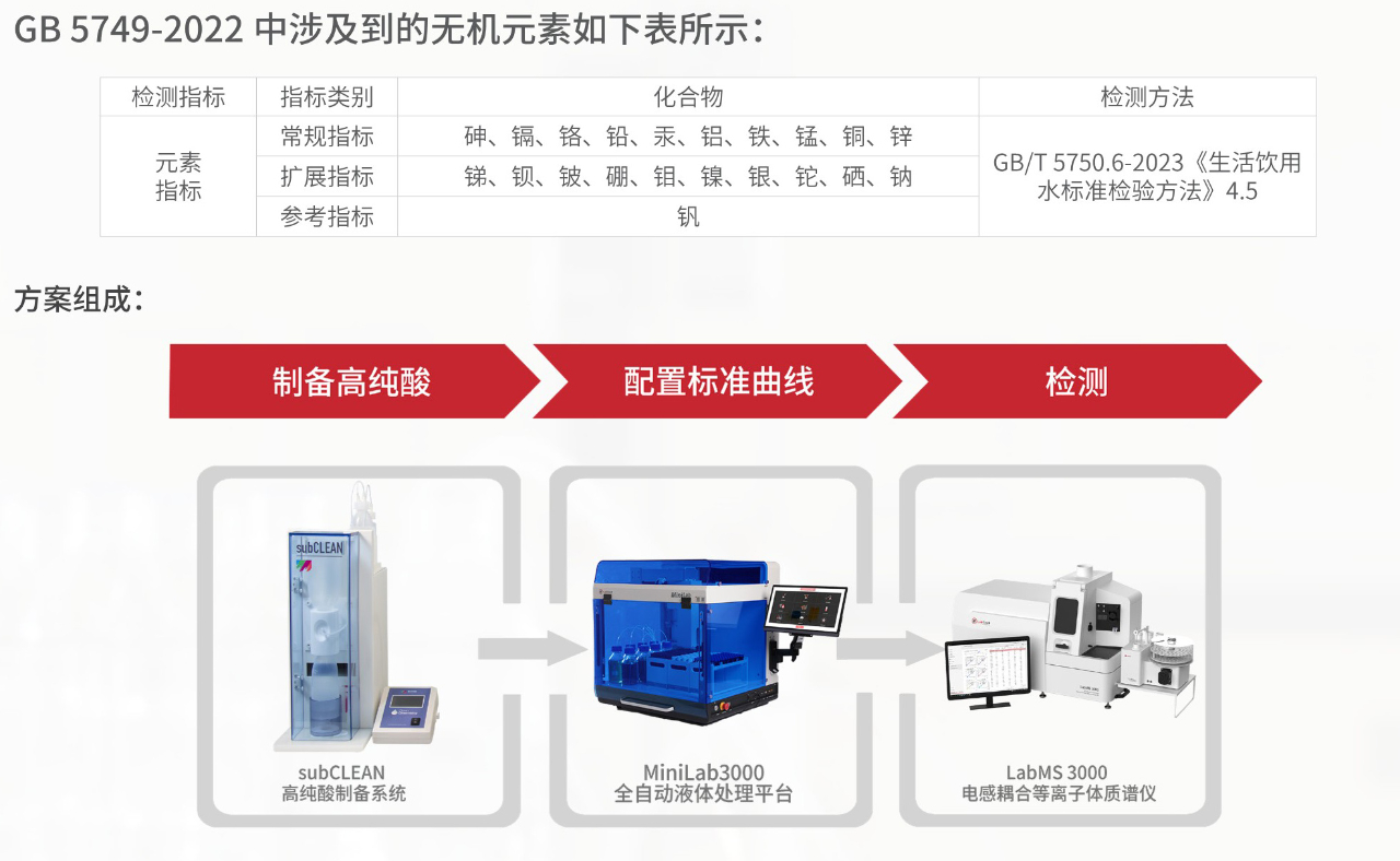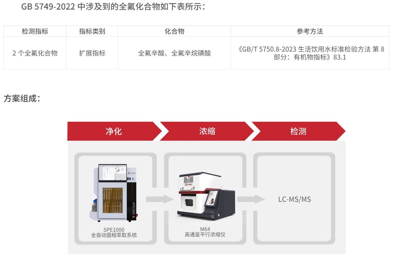 GB 5749-2022《生活飲用水衛(wèi)生標準》已于2023年4月1日正式實施,與之配套的《生活飲用水標準檢驗方法》GB/T 5750-2023將于2023年10月1日正式實施。作為樣品前處理與分析檢測技術的先鋒企業(yè),萊伯泰科積極響應新標準的要求,特推出全新的《生活飲用水行業(yè)解決方案》,旨在為用戶提供便捷的應對方案以及多方位的支持和保障,為新標準的實施提供有力的支持。