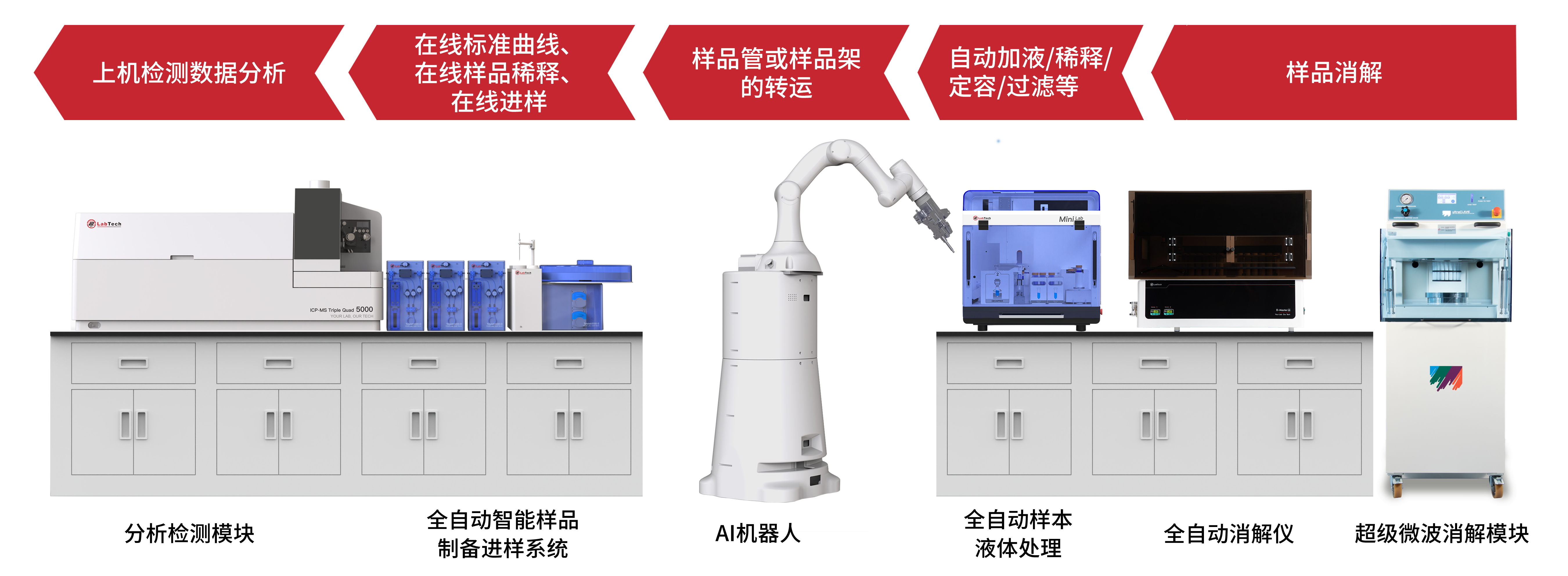 MidiLab9000-E重金屬在線分析系統(tǒng)采用樣品消解模塊,搭配全自動液體樣本制備系統(tǒng),與質(zhì)譜、光譜分析方法相結(jié)合,通過小萊AI機器人,實現(xiàn)從樣品消解到分析檢測全流程自動化,讓分析檢測更準(zhǔn)確、更快速、更智能。