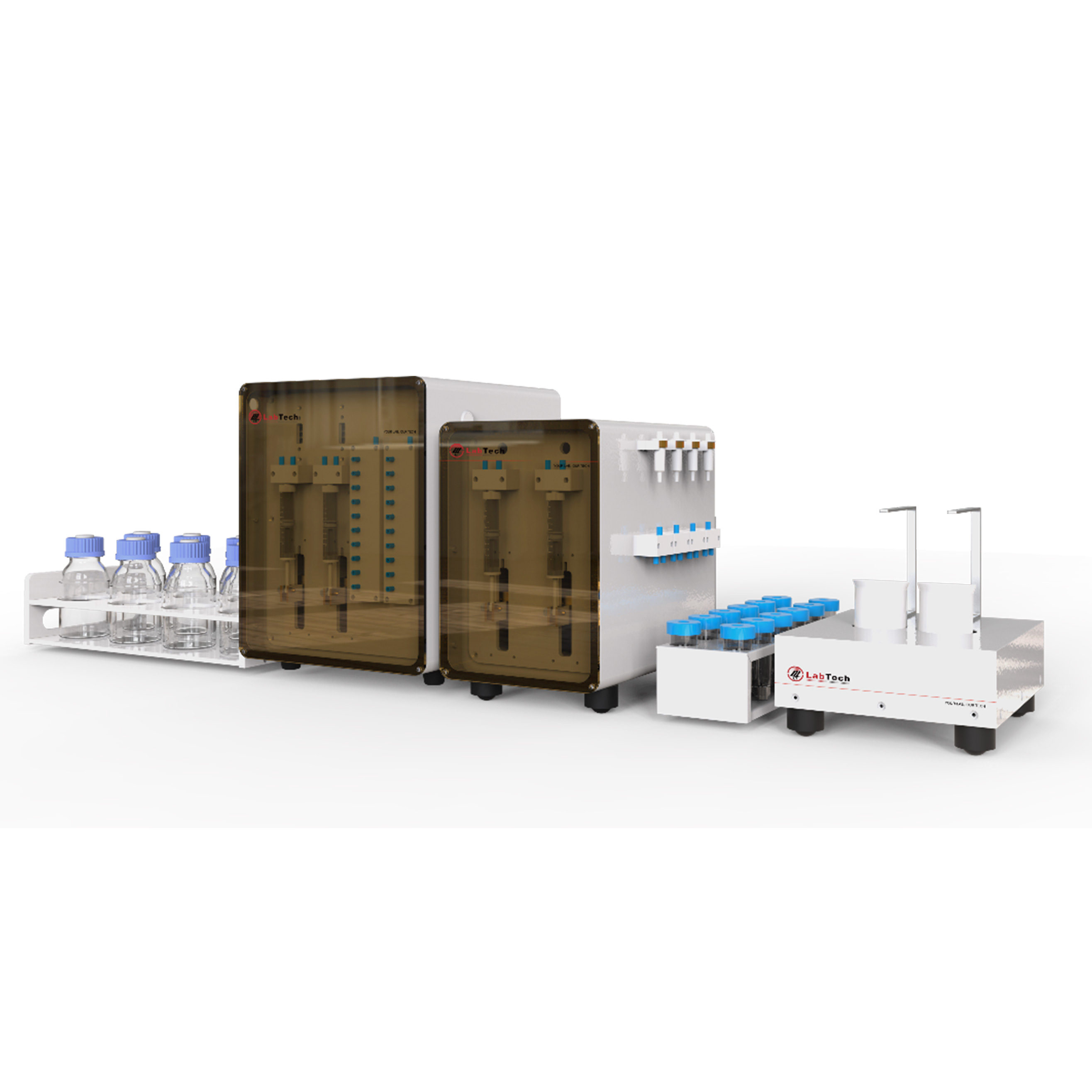 多功能型全自動核素分離純化系統(tǒng)可應(yīng)用于手套箱中,集成了萃取分離模塊、加熱濃縮消解模塊、樣品稀釋模塊等前處理裝置。萃取分離模塊為主模塊,結(jié)合前處理模塊,可自動完成高濃度的樣品的稀釋、調(diào)價混勻、萃取柱活化、上樣、清洗樣品瓶、淋洗、洗脫、洗脫液加熱濃縮后,再次溶解復(fù)溶等流程,也可采用串聯(lián)式設(shè)計可進行二次萃取,最終得到所需得目標核素??傮w積小,占地空間小,樣品處理量大,可根據(jù)用戶需求進行專業(yè)化定制。