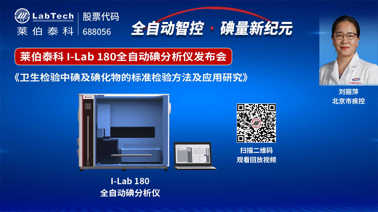9月20日,一場以“全自動智控,碘量新紀(jì)元”為主題的萊伯泰科全自動碘分析儀新品發(fā)布會暨疾控系統(tǒng)碘元素分析技術(shù)研討會在線上盛大舉行。會上,萊伯泰科實(shí)驗(yàn)室設(shè)備事業(yè)部榮耀揭幕了其首款分析儀器——I-Lab 180全自動碘分析儀。此次盛會榮幸邀請到北京市疾病預(yù)防控制中心的劉麗萍老師與承德市疾病預(yù)防控制中心質(zhì)量控制科科長王占輝老師作為專家嘉賓,與近千名在線觀眾共同見證了萊伯泰科的這一里程碑事件。