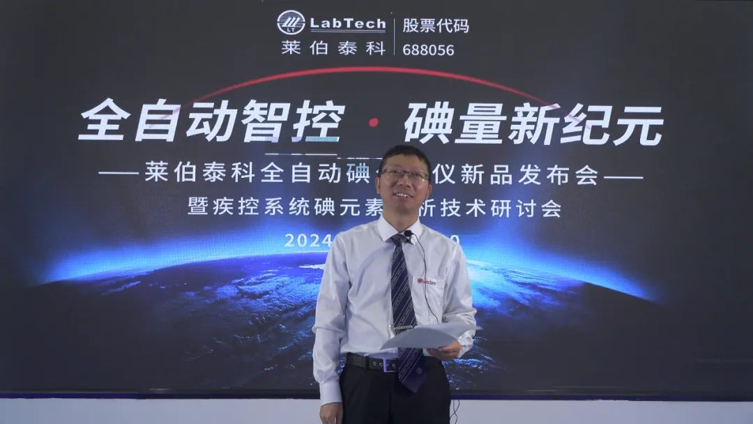 發(fā)布會由萊伯泰科高級副總經(jīng)理黃圖江先生致開幕辭拉開序幕。黃總對“I-Lab 180”的命名寓意進(jìn)行了闡釋:“I”代表碘元素,“Lab”寓意實(shí)驗(yàn)室,而“180”則意味著該儀器能一次性自動分析180個樣品,簡潔明了,便于記憶。隨后,黃總深入分享了萊伯泰科研發(fā)全自動碘分析儀的初衷。早在十多年前,萊伯泰科便已開始為疾控用戶提供尿碘消解儀,如VB77型號,在眾多疾控實(shí)驗(yàn)室中廣受歡迎。隨著科技的飛速發(fā)展,實(shí)驗(yàn)室用戶對分析儀器的自動化、智能化需求日益增強(qiáng),全自動碘分析儀應(yīng)運(yùn)而生。依托萊伯泰科在前處理技術(shù)及光學(xué)儀器開發(fā)方面的深厚積累,我們致力于打造一款讓用戶滿意的全自動碘分析儀,以滿足實(shí)際需求。最后,黃總對為I-Lab 180傾注心血的團(tuán)隊(duì)成員及近一年來提出寶貴建議的用戶表達(dá)了誠摯的感謝,并期待與大家攜手共進(jìn),探索碘元素分析技術(shù)的新篇章,為推動人類健康事業(yè)貢獻(xiàn)智慧與力量。