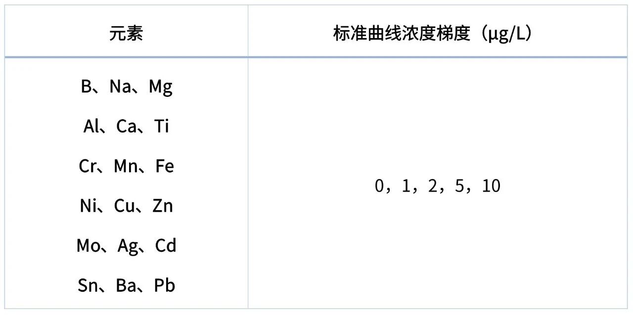 采用標(biāo)準(zhǔn)加入法,標(biāo)準(zhǔn)溶液中元素濃度如下: