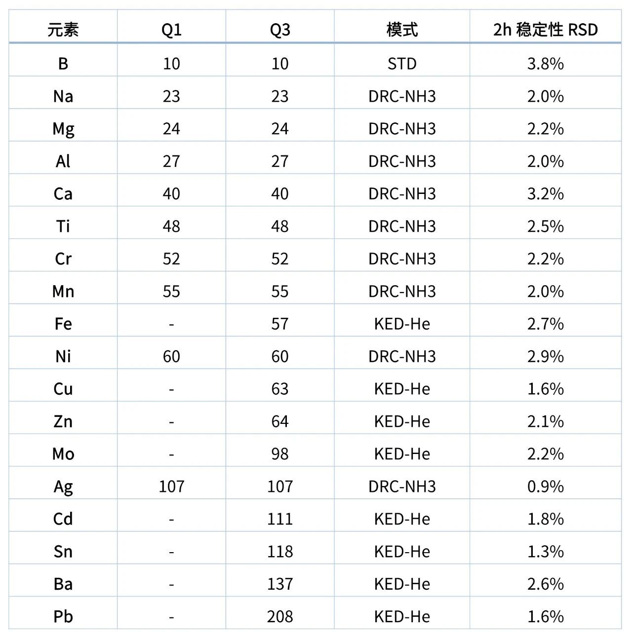 在儀器與方法的長期穩(wěn)定性方面,所有目標(biāo)元素的相對標(biāo)準(zhǔn)偏差(RSD)均在 0.9%~3.8% 之間,其中 Ag、Sn、Cu、Pb 等元素的 RSD 低于 2.0%,儀器保持了極佳的運(yùn)行穩(wěn)定性。
