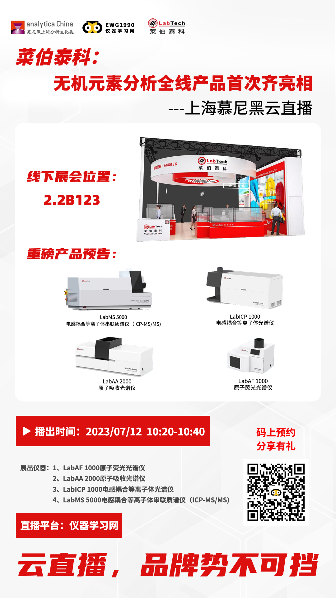 2023年上半年,萊伯泰科大動作頻頻,強勢發(fā)布五款新品,包括LabMS 5000電感耦合等離子體串聯(lián)質(zhì)譜儀、LabAA 2000原子吸收光譜儀、LabAF 1000原子熒光光譜儀、LabICP 1000電感耦合等離子體發(fā)射光譜儀及PT3000全自動固液吹掃捕集儀。現(xiàn)場不僅有真機展示,更有配套解決方案及產(chǎn)品經(jīng)理解答疑問,精彩介紹不容錯過!