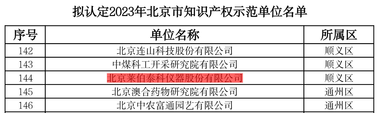 近日,北京市知識(shí)產(chǎn)權(quán)局根據(jù)《北京市知識(shí)產(chǎn)權(quán)試點(diǎn)示范單位認(rèn)定與管理辦法》(京知局〔2020〕171號(hào))組織開展了2023年北京市知識(shí)產(chǎn)權(quán)試點(diǎn)示范單位申報(bào)評(píng)審工作及2020年度北京市知識(shí)產(chǎn)權(quán)試點(diǎn)示范單位復(fù)審工作。經(jīng)初審、形式審核和專家評(píng)審,北京萊伯泰科儀器股份有限公司(以下簡(jiǎn)稱“萊伯泰科”)被認(rèn)定為2023年“北京市知識(shí)產(chǎn)權(quán)示范單位”。
