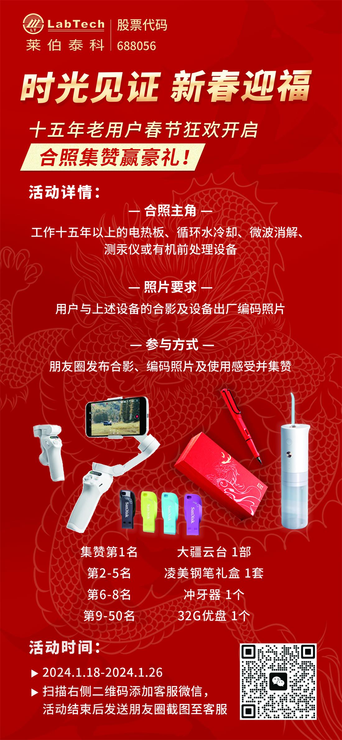 新年新氣象!值此春節(jié)臨近,我們特邀使用十五年以上電熱板、循環(huán)水冷卻、微波消解、測汞儀或有機(jī)前處理設(shè)備的老用戶參與迎新春活動。讓我們一同用心捕捉美好瞬間,共同見證歲月的痕跡!