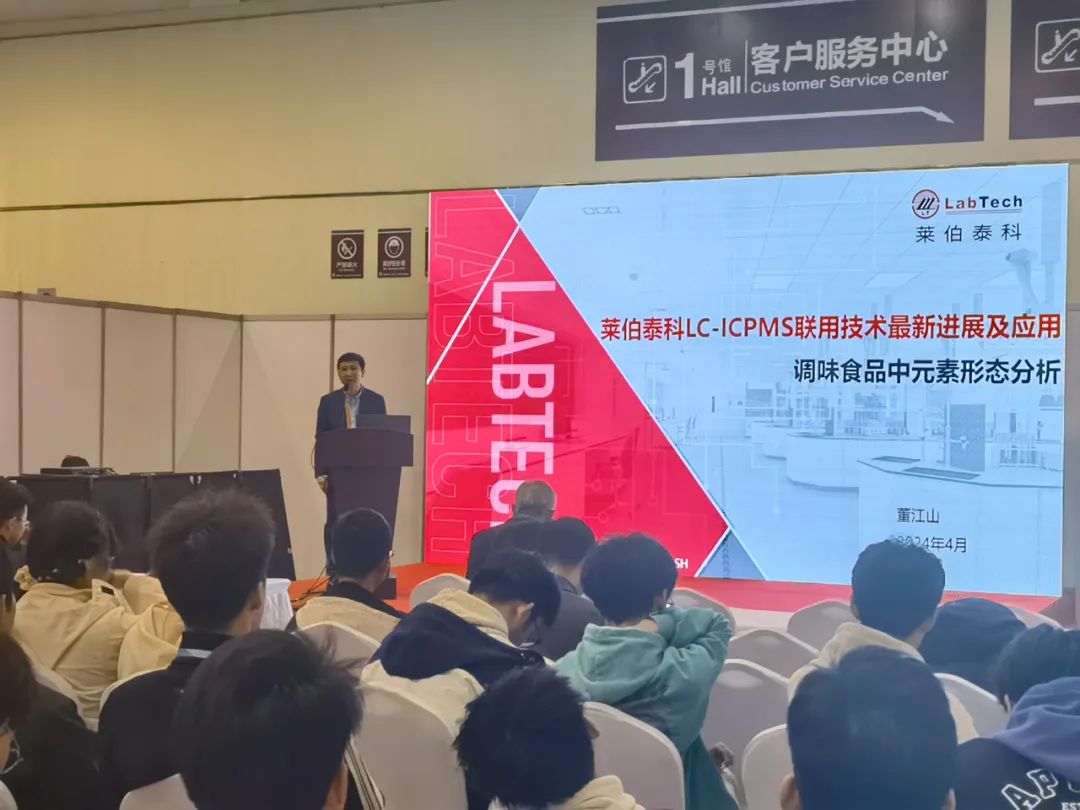 在大會現(xiàn)場,萊伯泰科產(chǎn)品經(jīng)理董江山發(fā)表了題為《萊伯泰科LC-ICPMS聯(lián)用技術(shù)最新進(jìn)展及應(yīng)用——調(diào)味食品中元素形態(tài)分析》的精彩報(bào)告。他深入剖析了萊伯泰科在電感耦合等離子體質(zhì)譜聯(lián)用技術(shù)領(lǐng)域的研究成果,以及這一技術(shù)在調(diào)味食品元素形態(tài)分析中的應(yīng)用。報(bào)告期間,臺下掌聲雷動,各位專家學(xué)者對萊伯泰科的技術(shù)實(shí)力和產(chǎn)品應(yīng)用給予了高度評價。報(bào)告結(jié)束后,眾多老師紛紛來到萊伯泰科展臺進(jìn)行咨詢,產(chǎn)品經(jīng)理及工程師們耐心解答,現(xiàn)場氛圍熱烈。