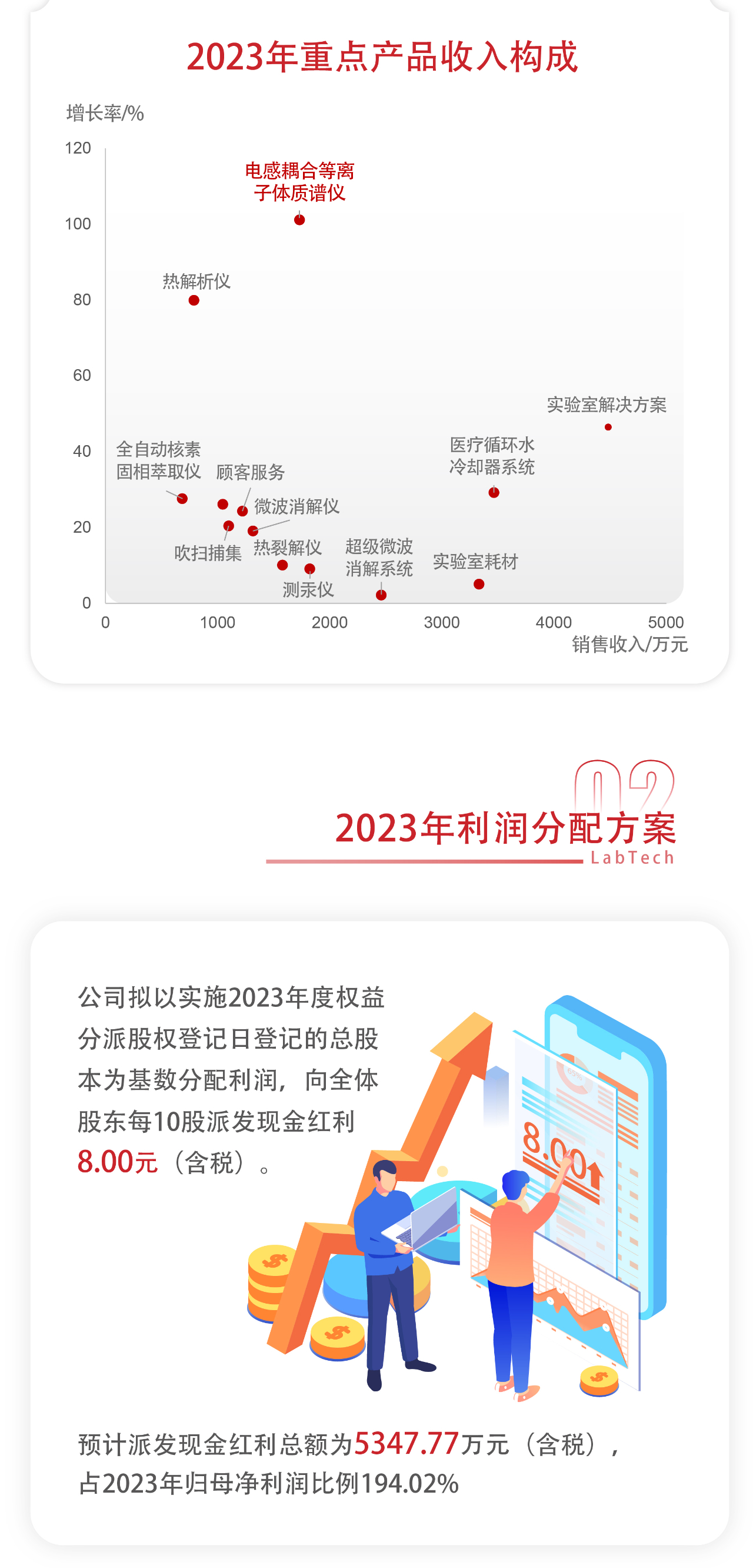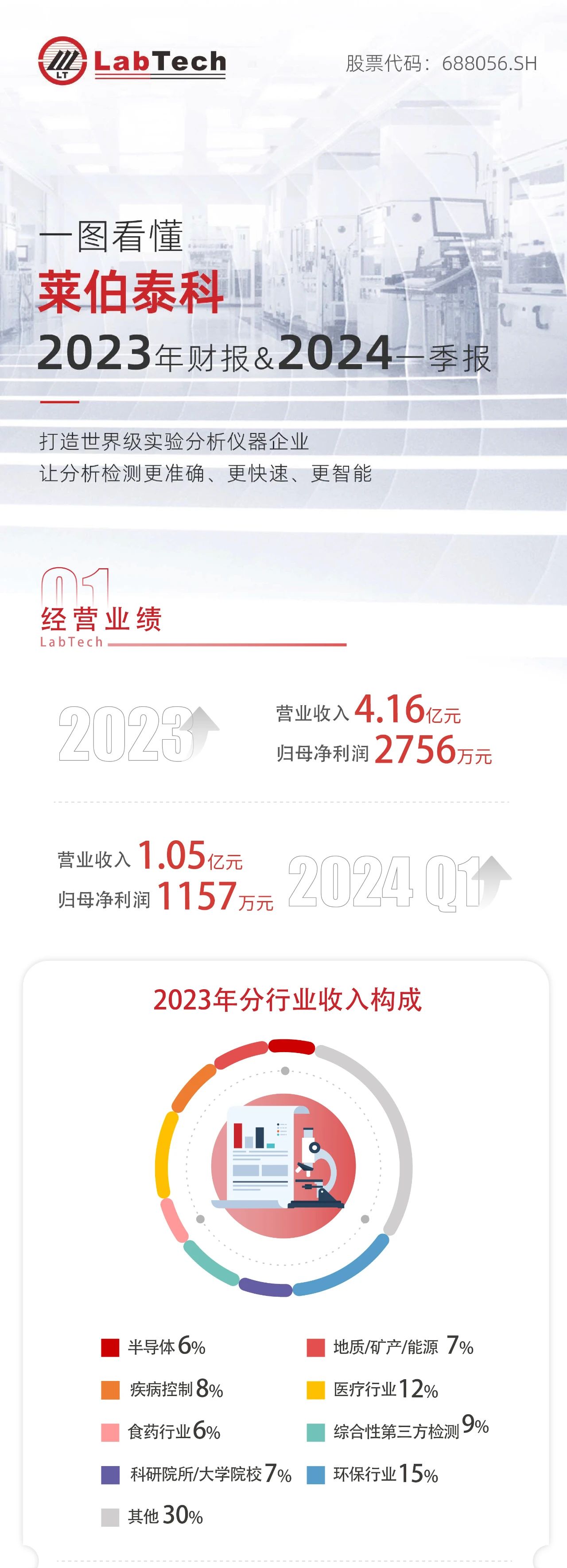 4月26日,萊伯泰科2023年年度報告及2024年一季報發(fā)布。2023年萊伯泰科實現(xiàn)營收4.16億元,同比增長17.18%,2024年一季度實現(xiàn)營收1.05億元,同比增長9.19%。2023年度權(quán)益分配擬10股派8元,擬派發(fā)現(xiàn)金紅利合計5347.77萬元。