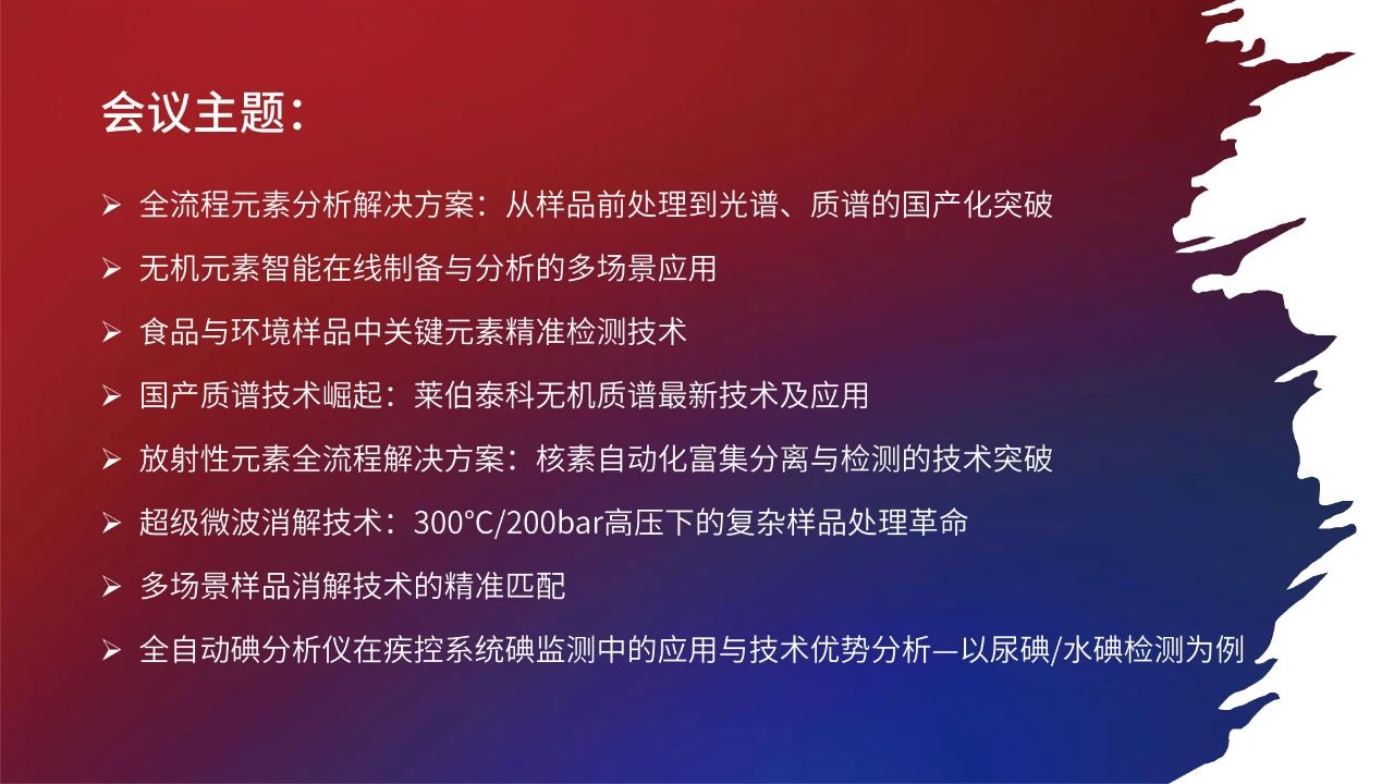 2025年,萊伯泰科將啟動(dòng)“元素分析整體解決方案全國(guó)巡回技術(shù)交流會(huì)”!誠(chéng)邀您參加這場(chǎng)聚焦國(guó)產(chǎn)化實(shí)踐與技術(shù)創(chuàng)新的交流會(huì),見(jiàn)證萊伯泰科從樣品前處理到全品類(lèi)分析儀器的智造實(shí)力。