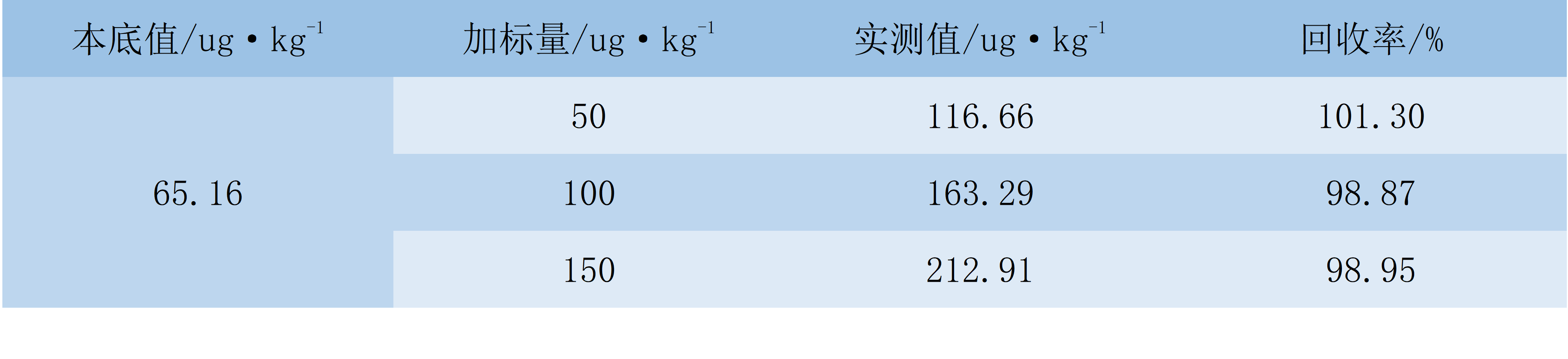 在銅精礦樣品中加入不同量的汞標(biāo)準(zhǔn)溶液,并進(jìn)行加標(biāo)回收試驗(yàn),回收試驗(yàn)結(jié)果見下表。由表4可知,樣品加標(biāo)回收率為98.1%~103%。