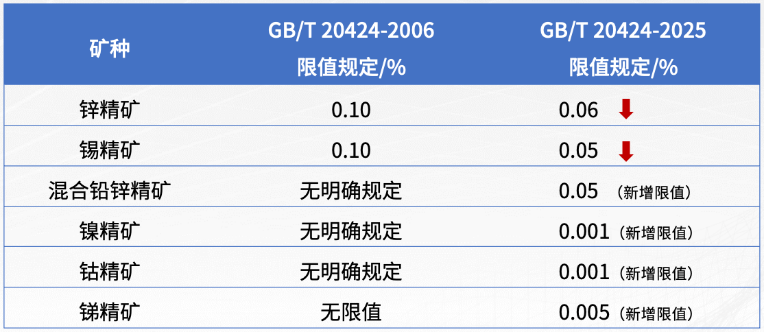 2025年2月發(fā)布的新國(guó)標(biāo)對(duì)多類礦石的汞限值進(jìn)行了顯著調(diào)整: