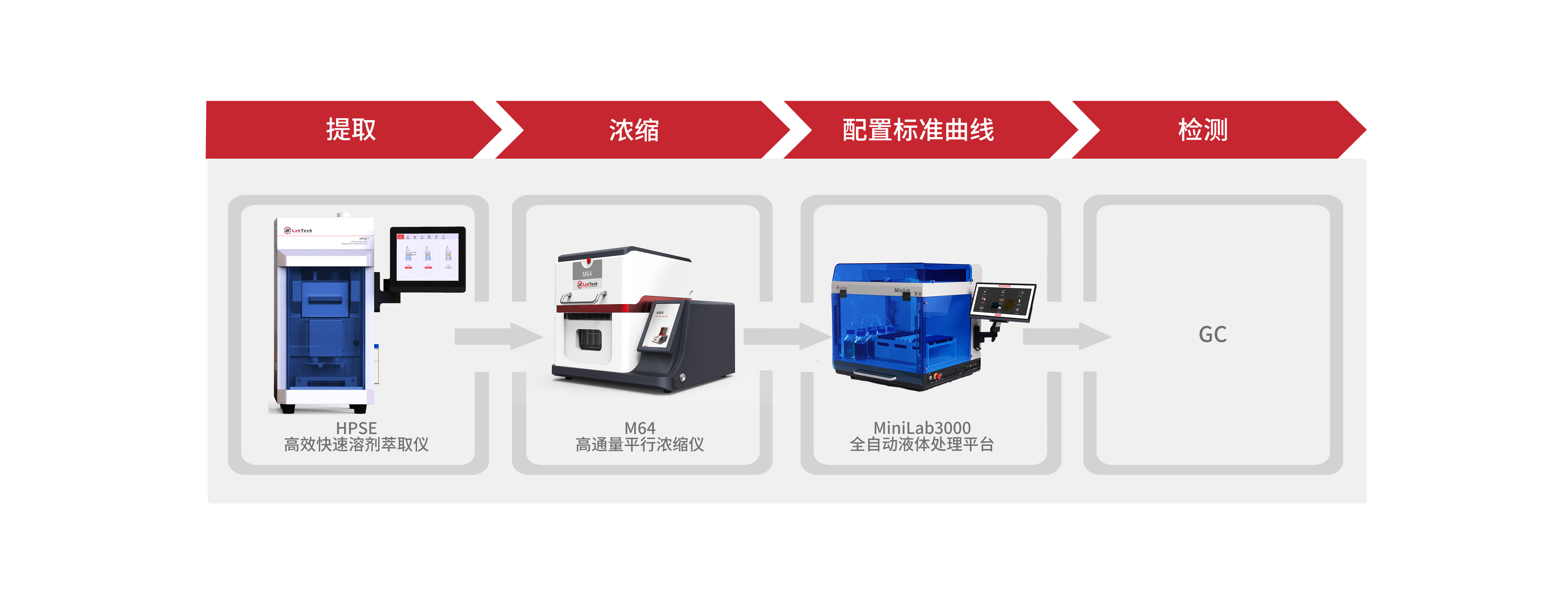 該方案可以實(shí)現(xiàn)自動(dòng)化、高通量的萃取和濃縮,有效避免和減少有機(jī)試劑對(duì)分析人員造成的健康危害,減少人員用量、減少人為誤差,提高實(shí)驗(yàn)效率。檢測(cè)結(jié)果證明使用萊伯泰科的高效快速溶劑萃取儀萃取,多通道平行濃縮儀和高通量平行濃縮儀濃縮,方法準(zhǔn)確性好、精密度高、可以實(shí)現(xiàn)高通量自動(dòng)化的檢測(cè)。