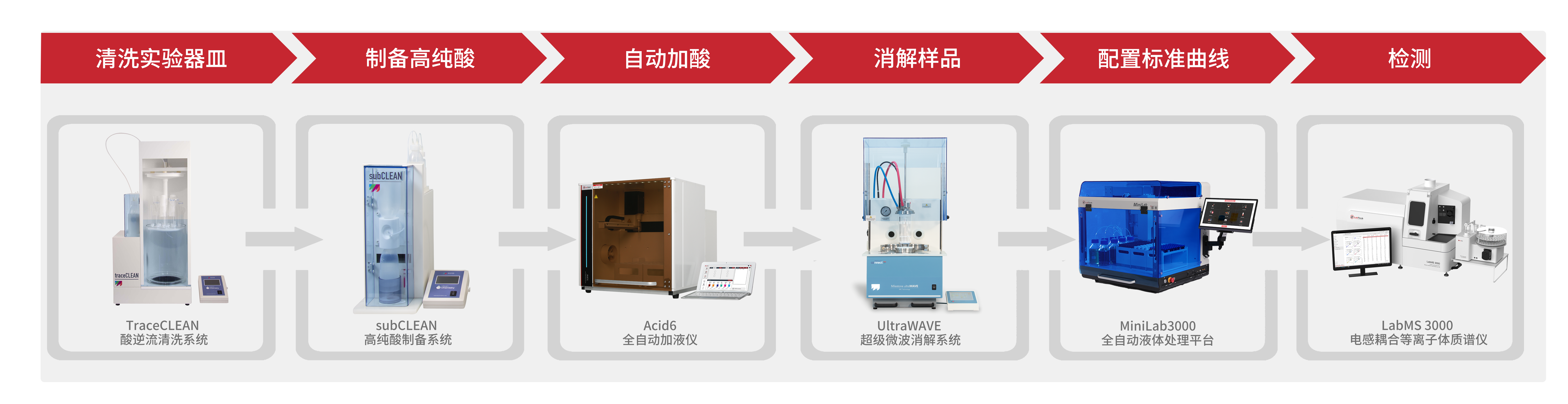 本方案采用酸純化儀和酸清洗儀處理相關試劑容器,可降低試劑空白和罐體交叉污染,超級微波消解儀實現(xiàn)了短時間內(nèi)采用高溫高壓密閉條件下消解巖石樣品的能力,用酸量少,時間短,效率高,消解液采用LabMS 3000電感耦合等離子體測試,可專門為鉑族元素優(yōu)化出儀器的最佳參數(shù),耐高鹽的標準配置可以輕松應對巖石等復雜基體,儀器使用方法簡便、操作靈活,適用于地礦土壤樣品中痕量鉑族元素的檢測分析。
